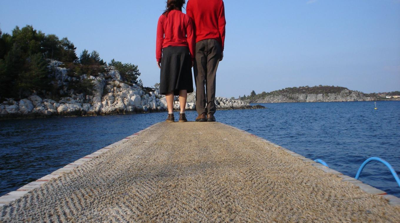 Two performers attempt to find intimacy across an infinite horizon and then part their separate ways, mapping the distance between them.