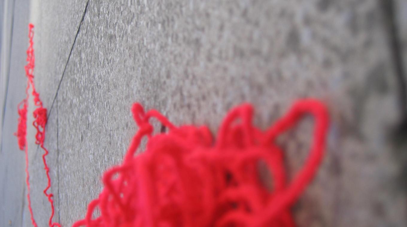In this video and performance installation, Juliet Ellis walks through the streets of a city mapping out her journey, leaving a footprint, a singular action, unplanned traces. A performance existing through the mapping of memories and time, using places as a point of departure. Surrounded by sublime repeated images of a city, the audience are invited to unravel her knitted dress. Juliet has collaborated with Graham Clayton-Chance to create the stunning visuals for hidden thread.