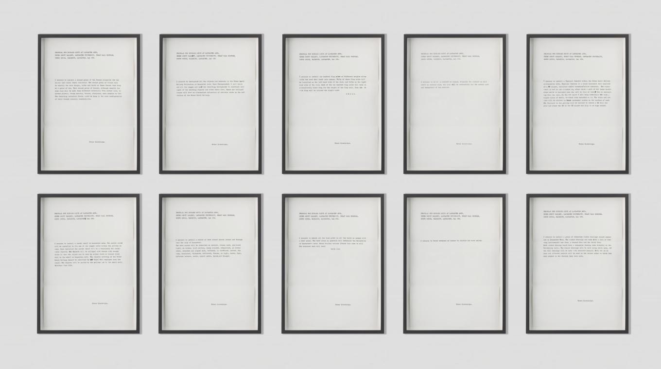 The exhibition includes Proposals for Lancaster Arts by Peter Liversidge. Although his work exists in almost every conceivable medium, his artworks, interventions and performances all begin in the same way: as a proposal, typed on an Olivetti Lettera 35. In response to each new project, a group of proposals is written which consider the location, its history and the relationship with the surrounding community. Proposals for Lancaster Arts considers the home of the collection and Lancaster. We will work with the artist, The Ruskin and the Lancaster community to realise selected proposals during our season. This could involve planting an orchard, everyone learning the same melody or installing one hundred flagpoles.