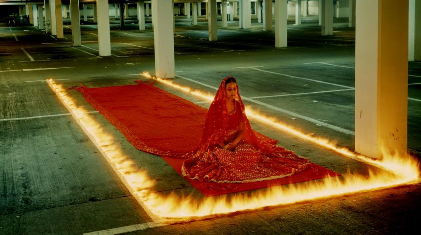 Rajni Shah (director/performer), Lucille Acevedo-Jones (costume/set designer) and Cis Oboyle (lighting designer) create three performative loops that weave in and out of synchronisation for the duration of the piece. By repeatedly inhabiting and abandoning the figures of Elizabeth I and a traditional Indian bride, Rajni reveals more and more of her true self during the performance and gently invites the audience to question their own identity.